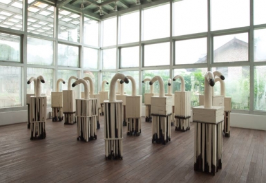 WMD, Glazed ceramic, wood,Steel, Industrial paint, 각50x50x151(cm), 2012