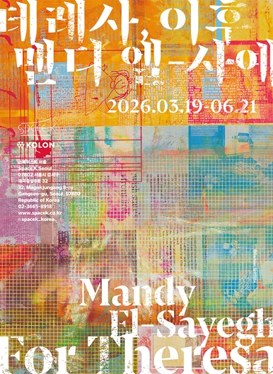 코오롱의 문화예술 나눔공간 스페이스K 서울은 런던을 기반으로 활동하는 맨디 엘-사예(Mandy El-Sayegh, b.1985)의 개인전 《테레사, 이후(For Theresa)》를 개최한다. 말레이시아 태생으로 팔레스타인·중국계 혈통을 지닌 작가는 서구 사회에서 성장하며 체득한 ‘이방인의 시선’을 바탕으로 자료수집과 편집 방식을 동원한 독창적인 아카이브적 설치 작업을 전개해 왔다.