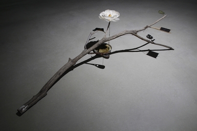 Liquid Memory – Endless Flower, 2026, 고사목, 조화, 태양전지, 구리, 황동, 가변크기