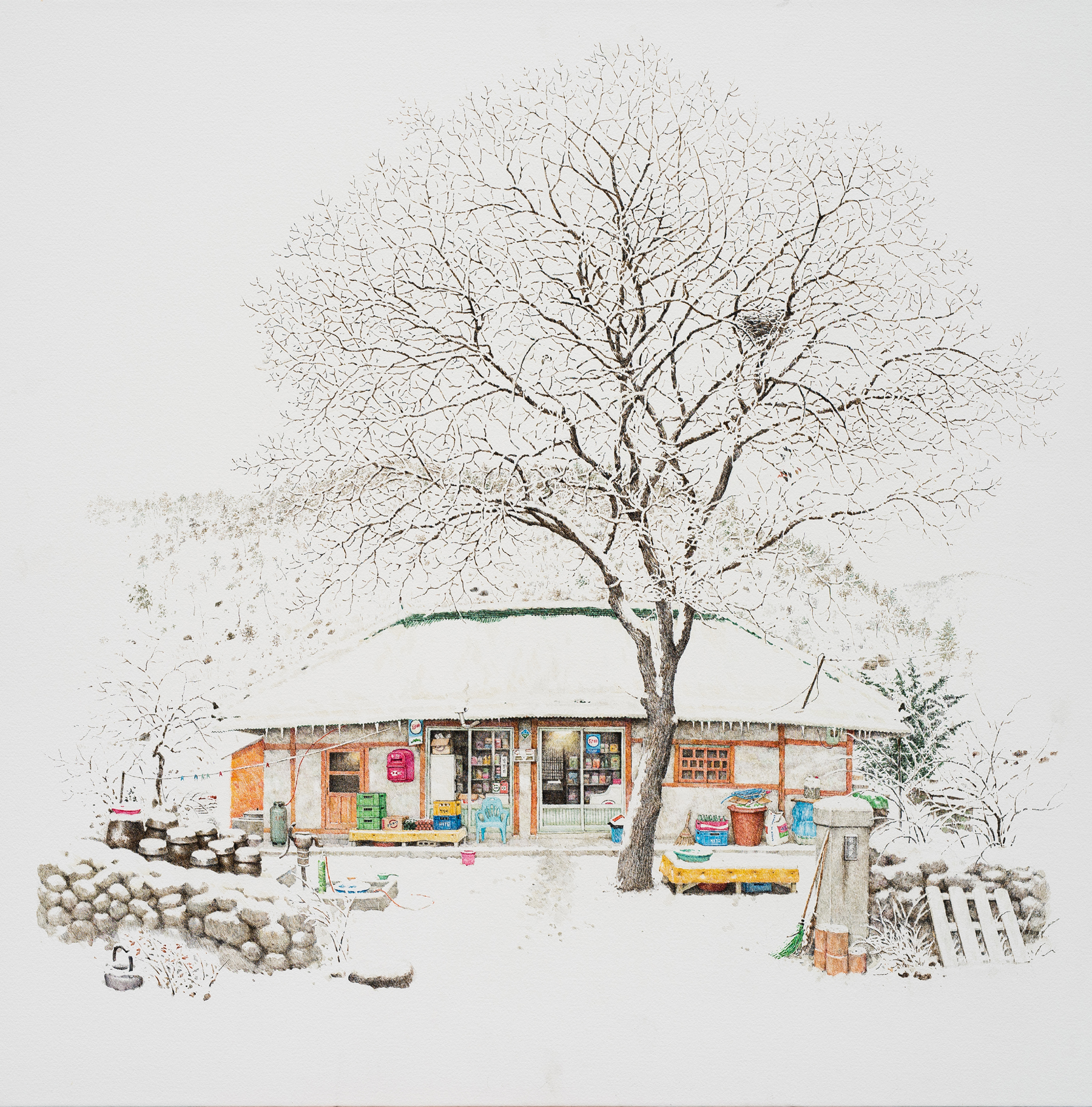 산척에서-겨울, with a pen, use the acrylic ink on paper, 80 x 80cm, 2017