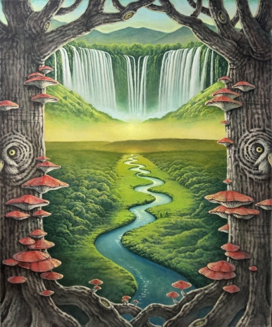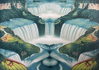 뉴 에이지 나이아가라 2, 2026, 린넨에 아크릴릭 과슈, 색연필, 162.1x227.4cm