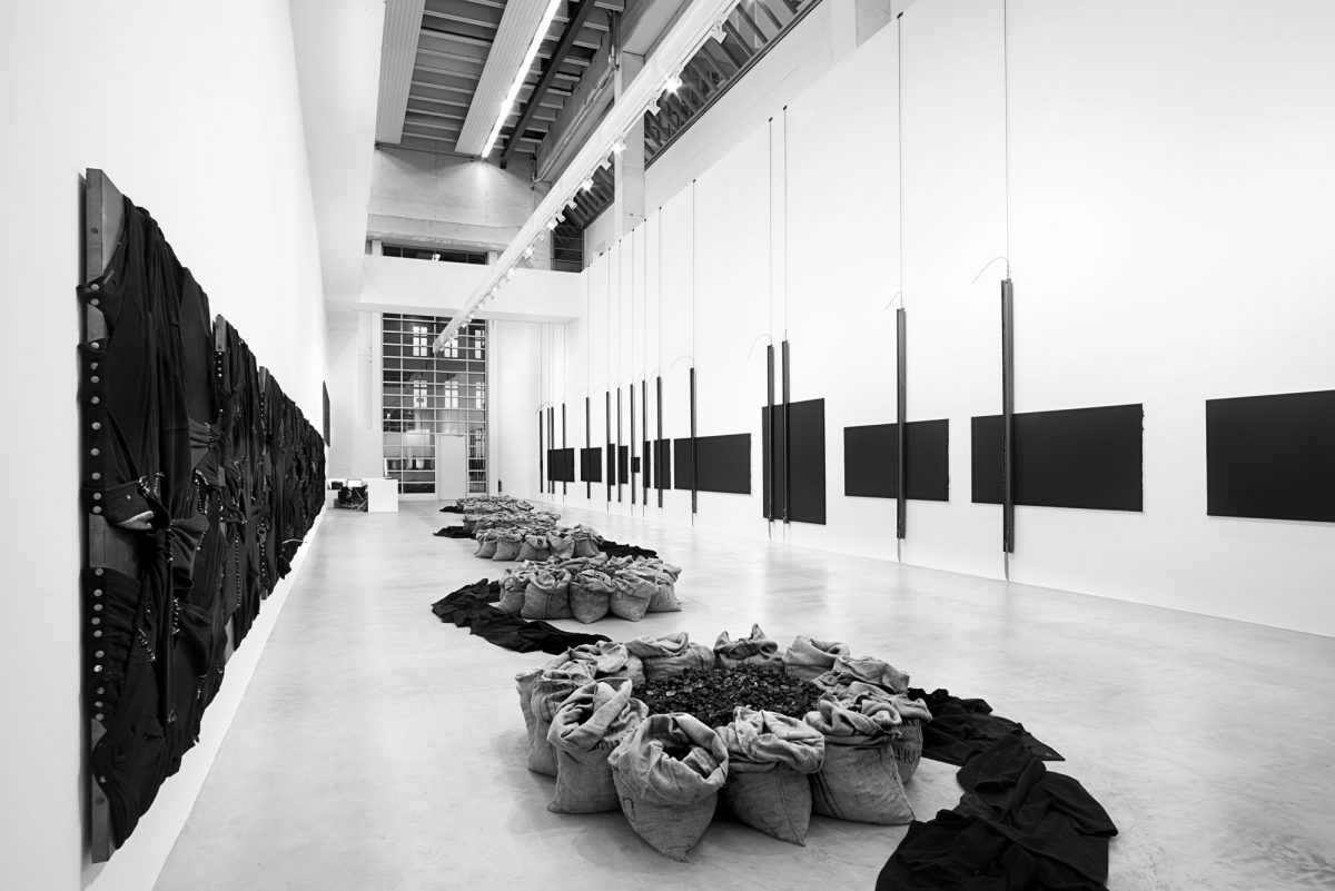 untitled, 2014 iron beams, knives and torn coats dimensions variable presented at unlimited, art basel 2016