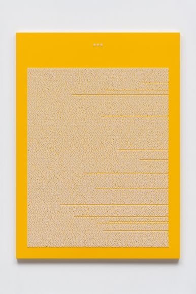 레이스 뜨는 여자(파스칼 레네작, 69-107page), 4m인공진주, 접착제, 아크릴물감, 나무패널, 전체 135x60cm, 2012
