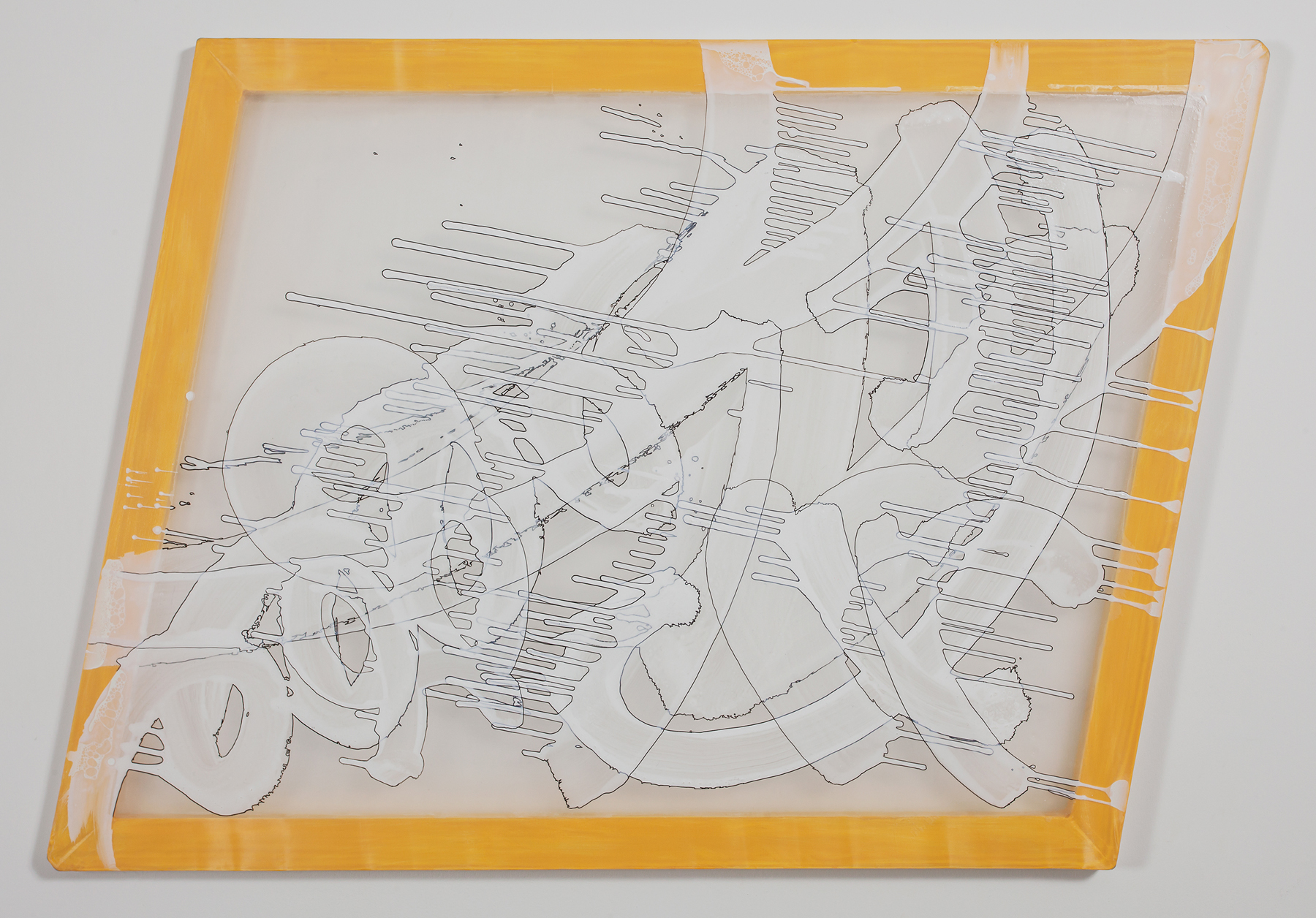 About Abstraction II, acrylic, painting marker on chiffon, wooden frame, hinge_130.3×162cm_2018