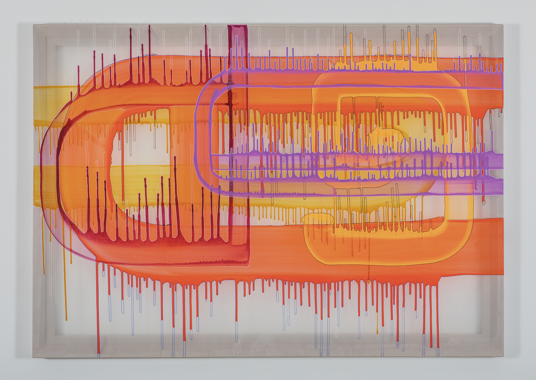 4efgmno2rtv, acrylic, painting marker, chiffon, parallelogram, wooden frame, hinge_134.5×91cm_2018