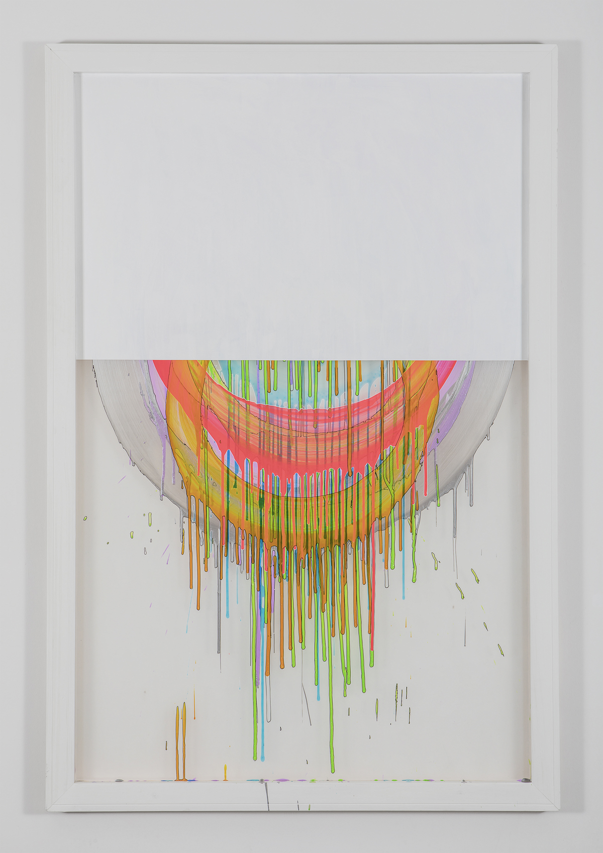 4efgmno2rtv, acrylic, painting marker, chiffon, parallelogram, wooden frame, hinge_134.5×91cm_2018