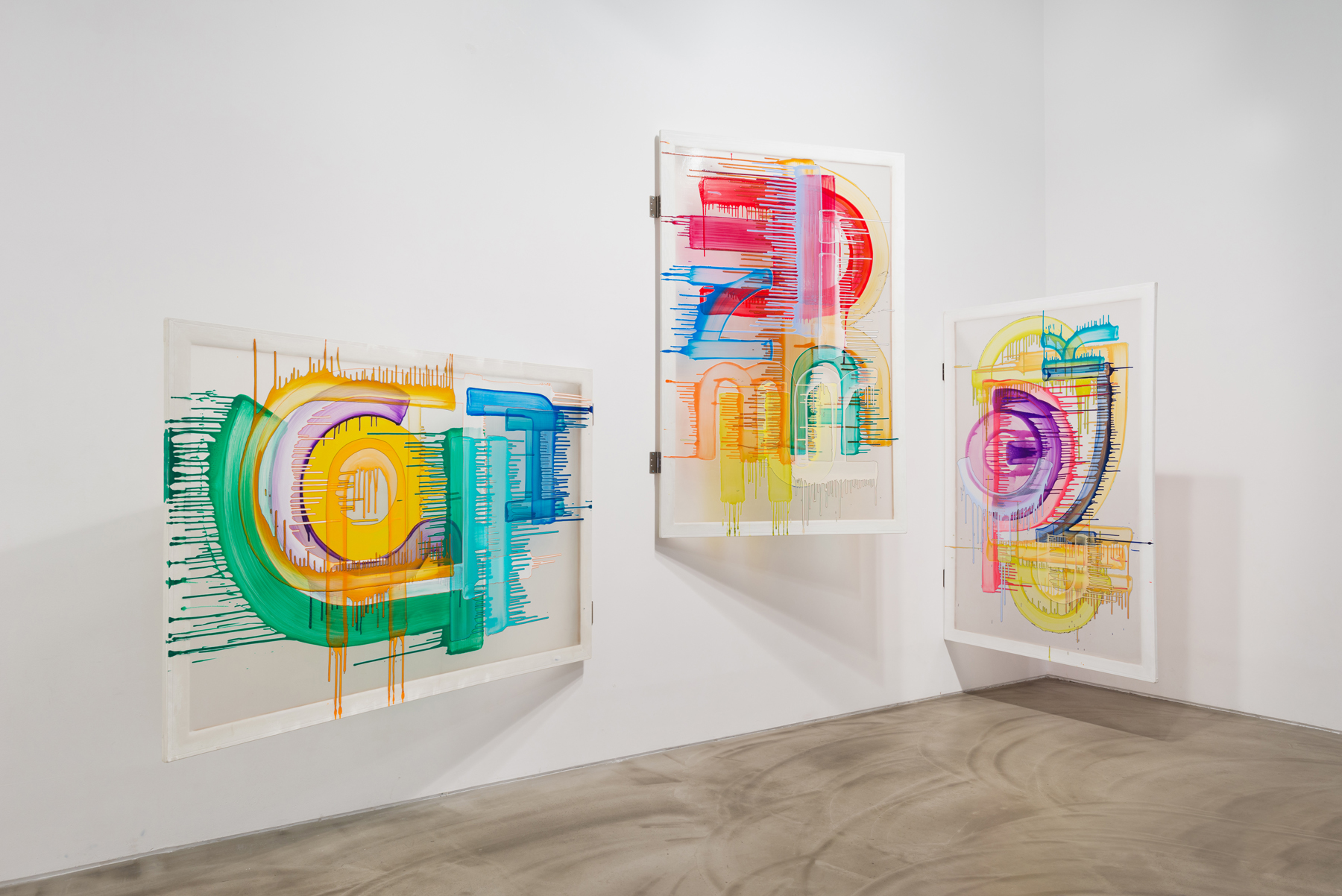The Color of Laughing, acrylic, painting marker on chiffon, wooden frame, hinge_130.3×193.9cm_2018