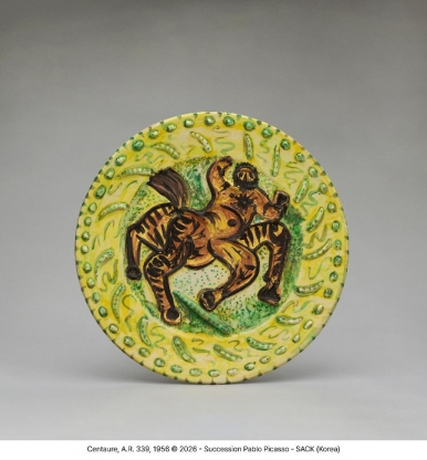 켄타우로스, A.R. 339, 1956, 백토, 화장토 장식, 부분 유약 시유, 41×41×4cm(자료제공: 국립현대미술관)