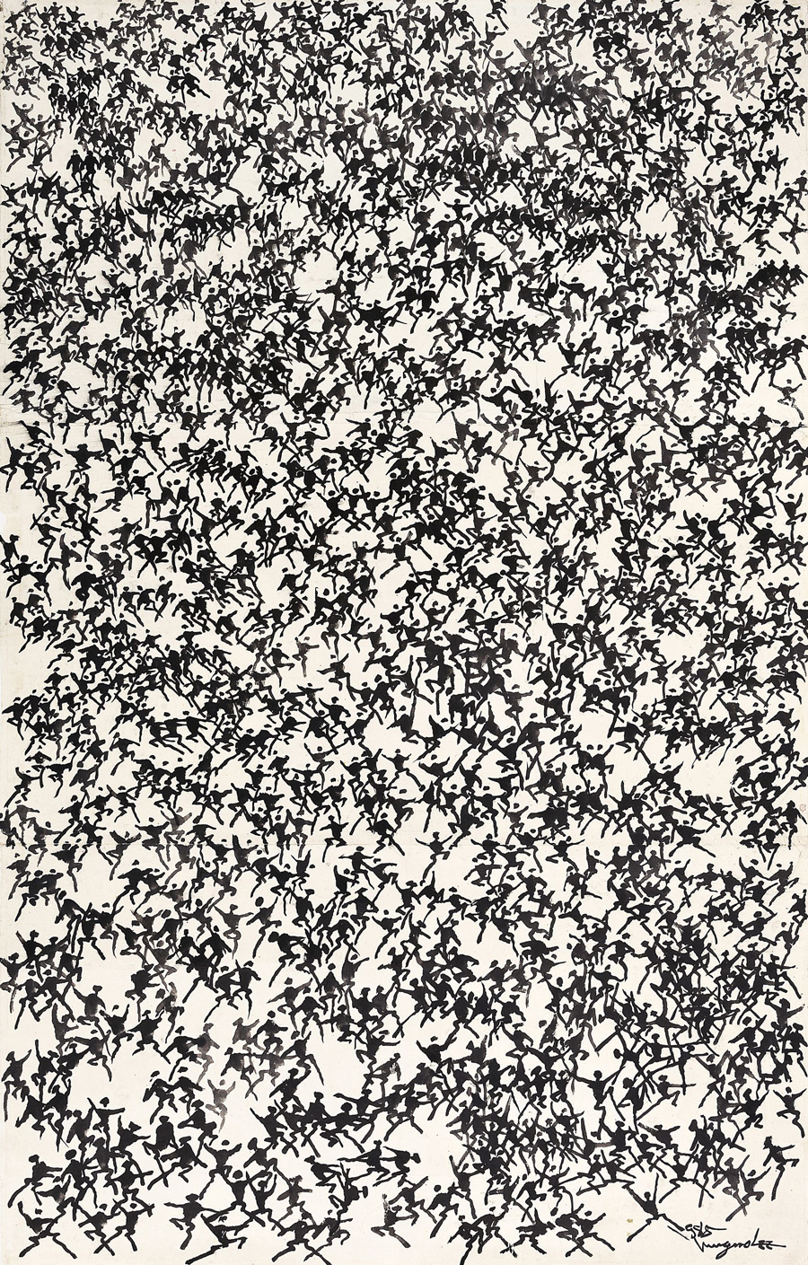 군상_ 1985, 종이에 먹, 217x138cm, CNCITY마음에너지재단 소장