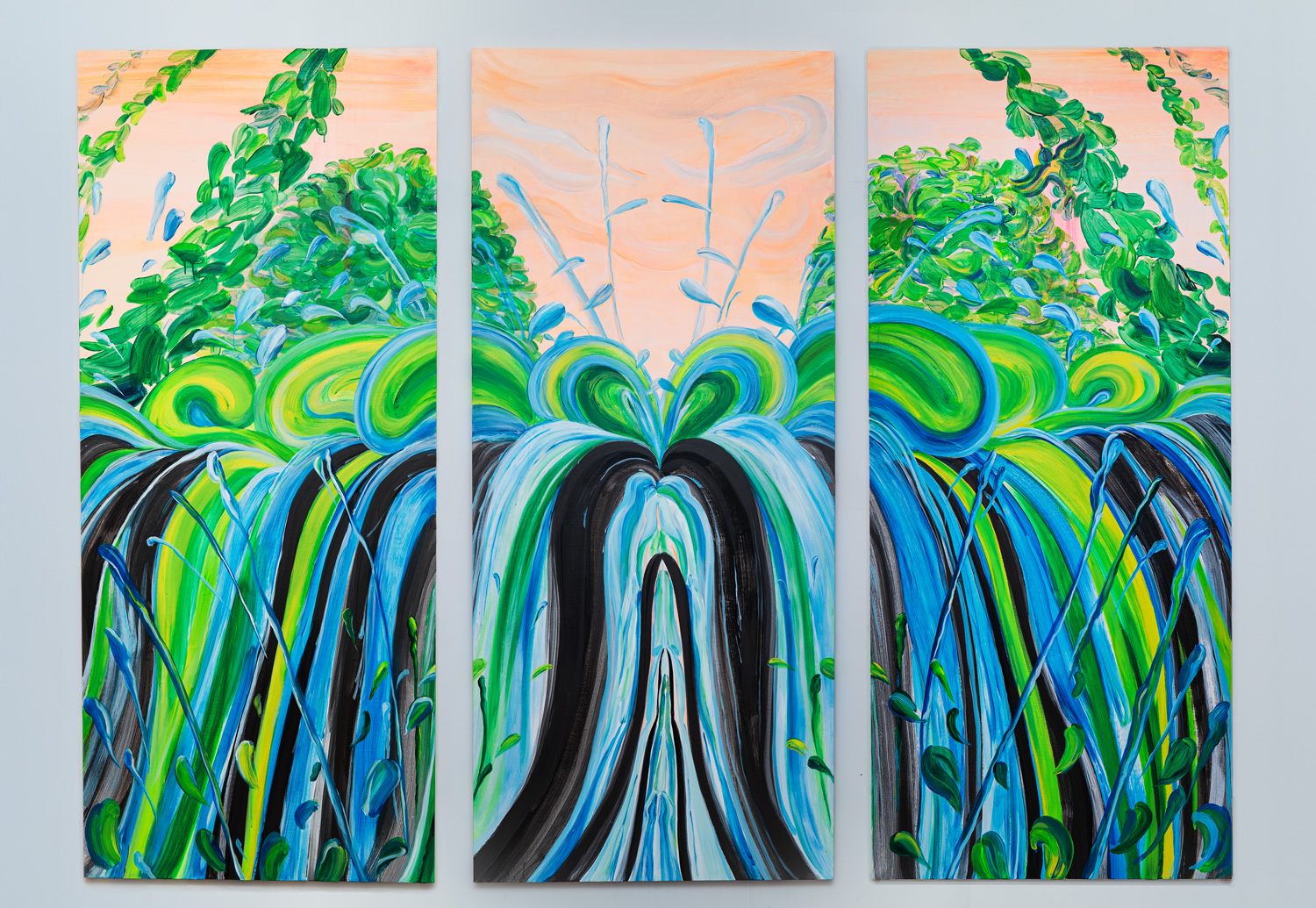 파란 물_ 린넨에 아크릴, 각 100 × 230cm, 총 3점, 2025