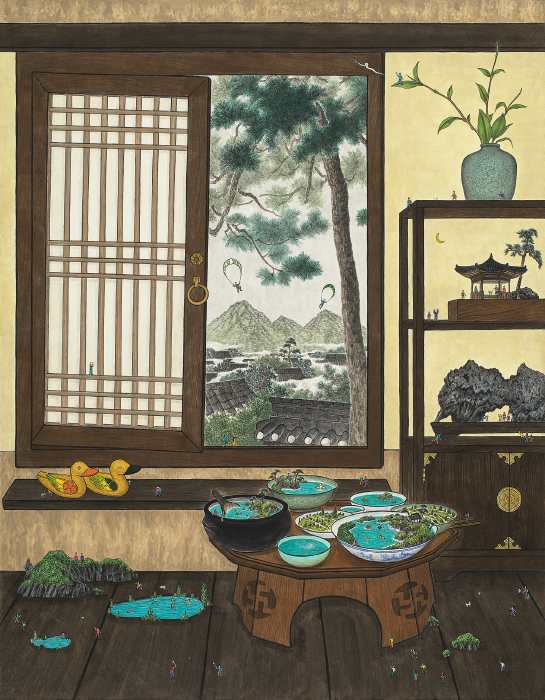 창밖의 풍경은 지난 추억을 방안으로 이끌고_ 장지에 수묵채색_117x92cm_2025