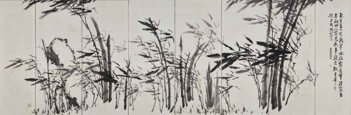 묵죽, 1987, 종이에 먹; 8폭 병풍, 103 × 314 cm, 개인소장