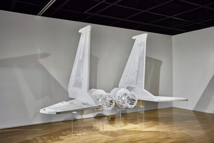 부드러운 K9, 2017, 양복, 넥타이, 셔츠, 실, 이불솜, 나무 프레임, 200×515×150cm, 국립현대미술관 소장