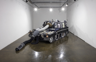 부드러운 K9, 2017, 양복, 넥타이, 셔츠, 실, 이불솜, 나무 프레임, 200×515×150cm, 국립현대미술관 소장