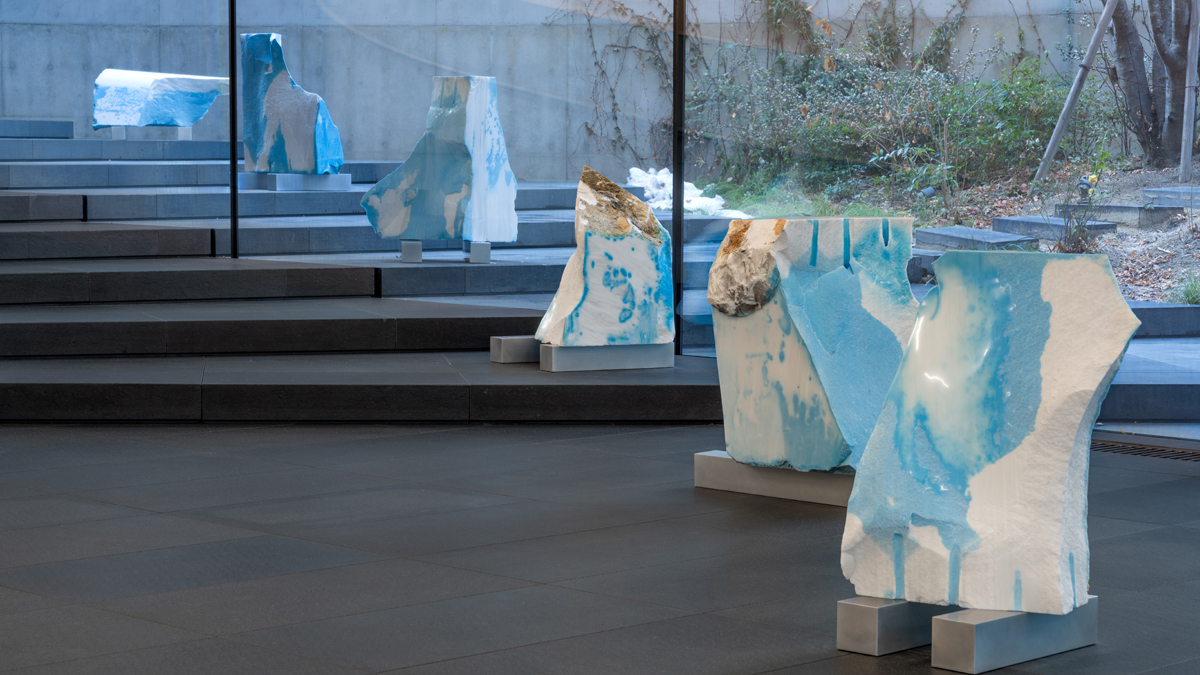 Volare, 2025, 대리석, 잉크, 알루미늄, 가변 설치