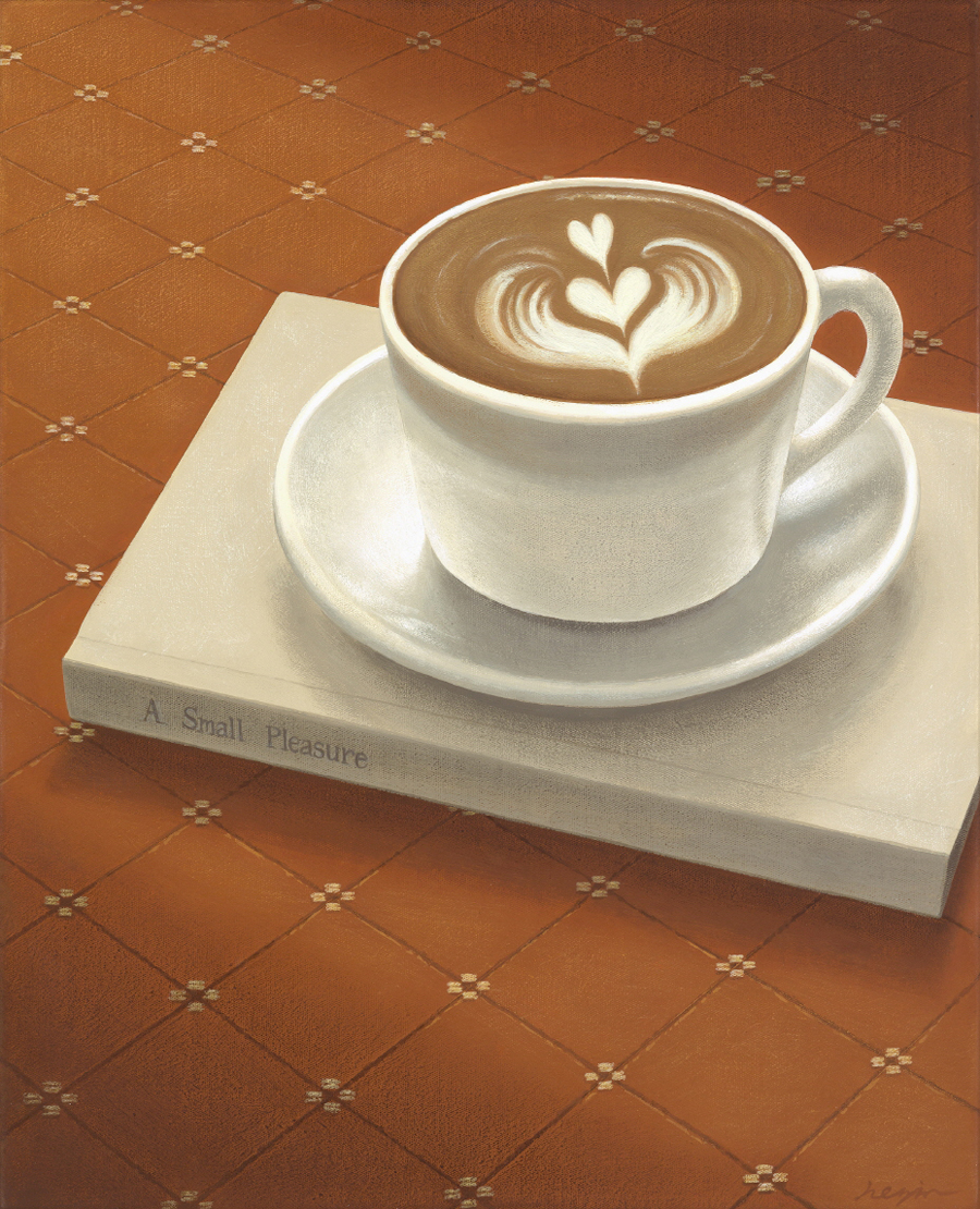Coffee time, 2024, Acrylic gouache on canvas, 27.3x22 cm