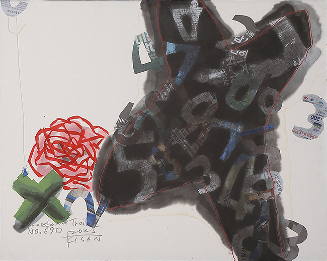 Freedom Trail, 689 91cmⅹ72.5cm 한지+먹+색지+신문지 2025