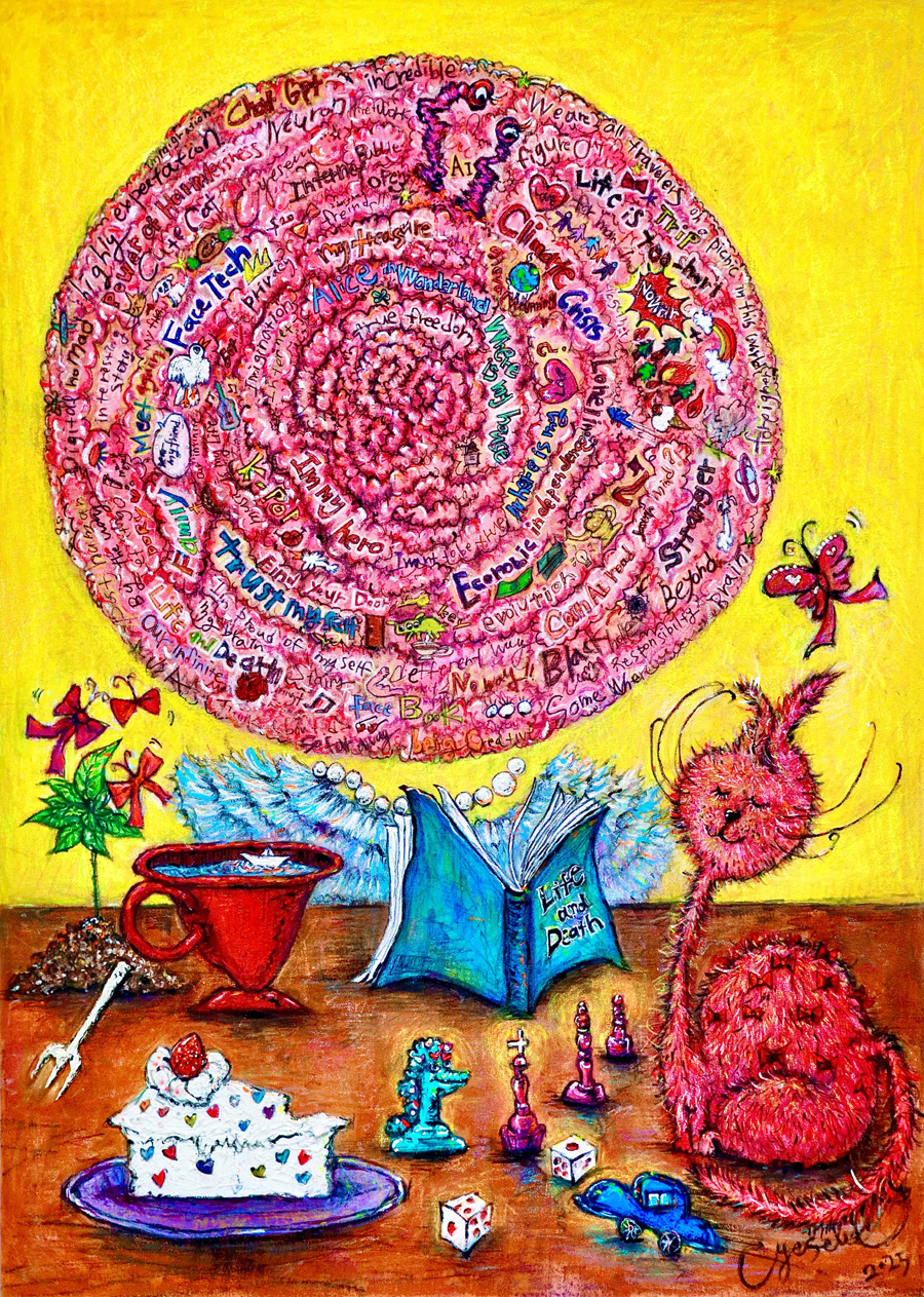 몰입 Immersion, 90.9×65.1cm, mixed media on fabric, 2025