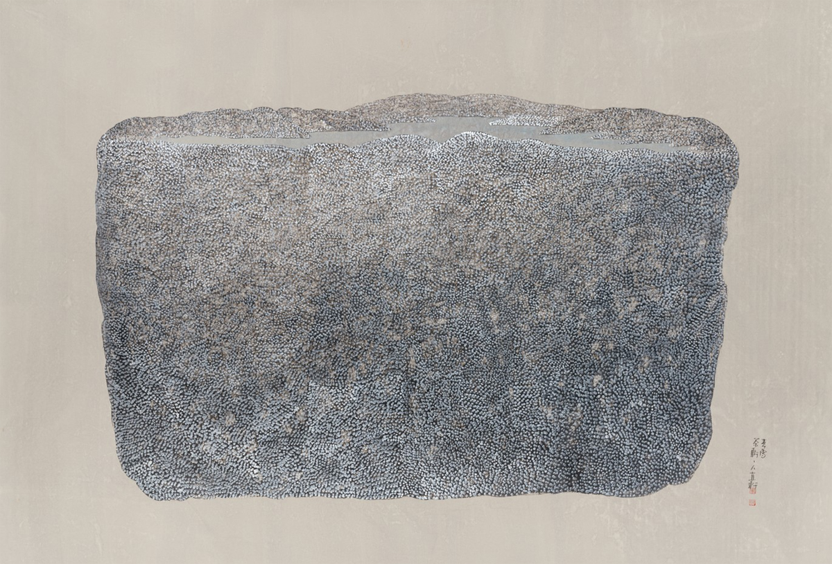 돌, 2025, 한지에 수묵채색, 금니, 143x210cm