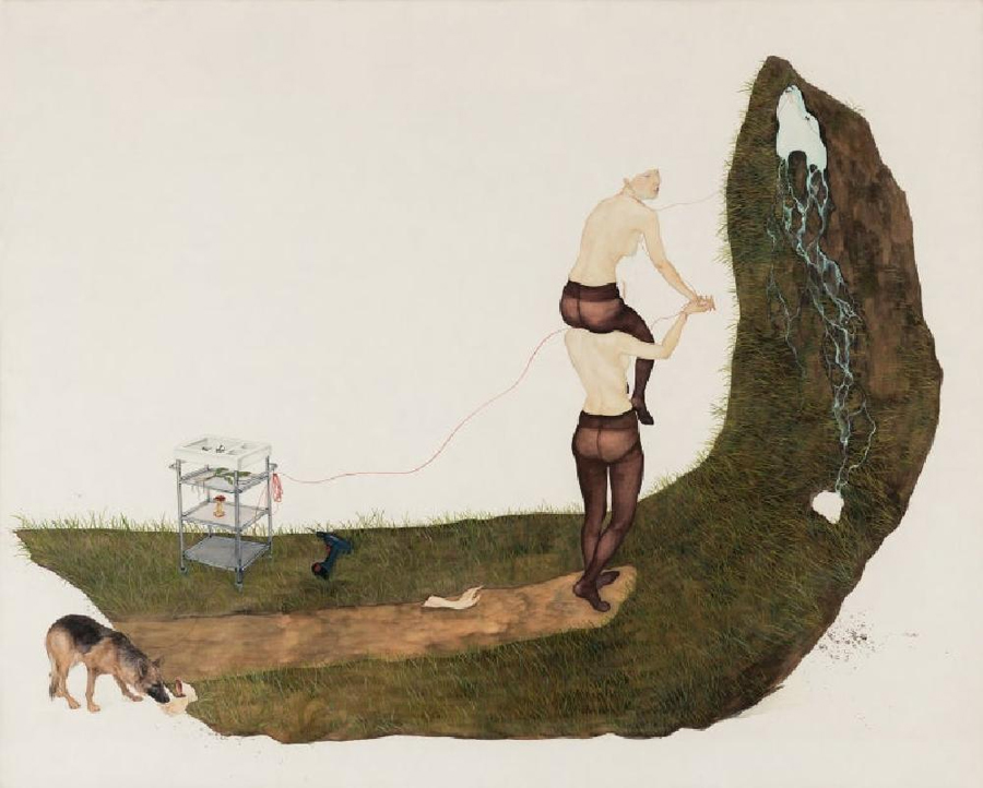 저지대 The Lowland, 2017 Korean paint on Linen 122 x 550 cm