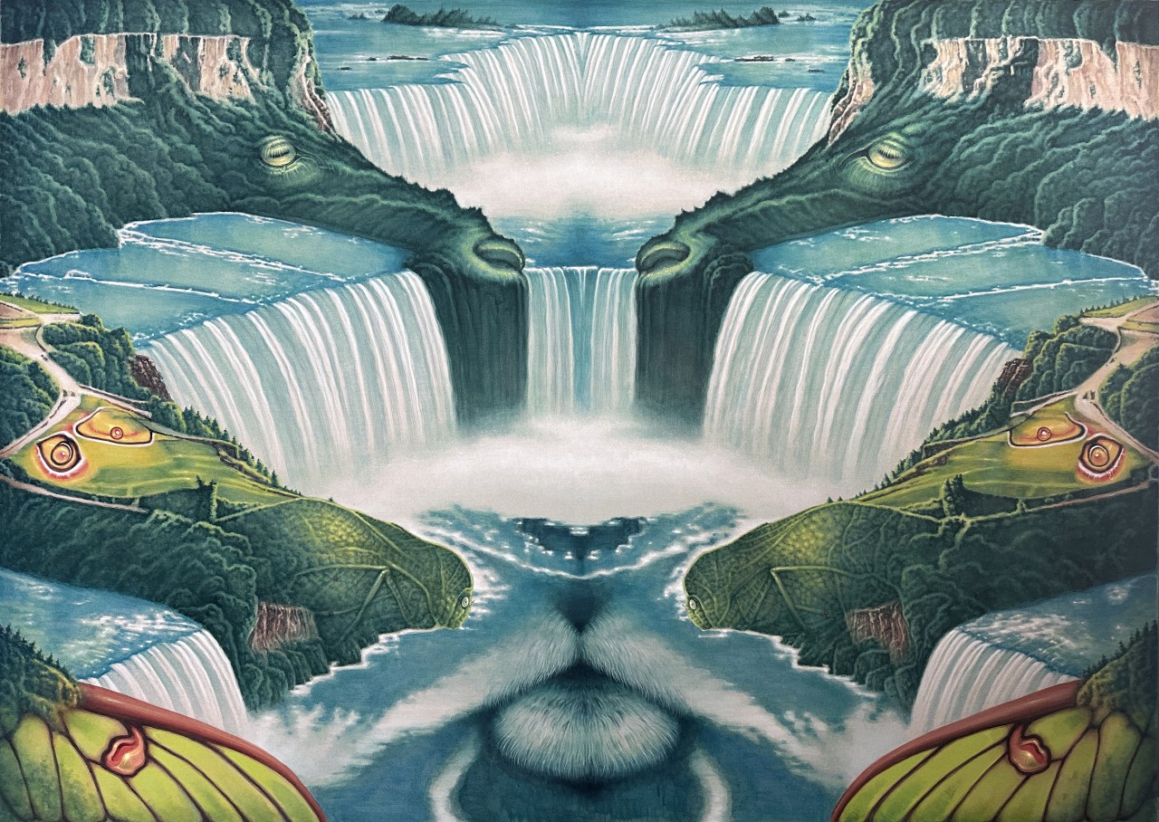 뉴 에이지 나이아가라 2, 2026, 린넨에 아크릴릭 과슈, 색연필, 162.1x227.4cm