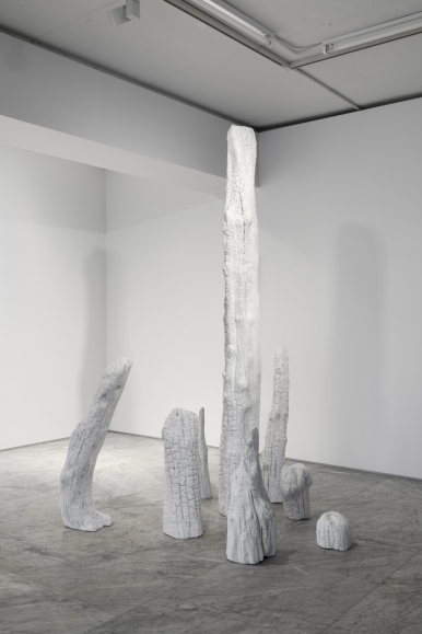 Untitled, 2025, Paint on burnt wood Dimensions variable, Courtesy of the artist & PKM Gallery
