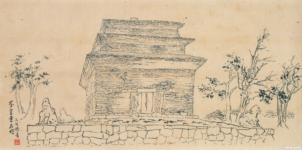 분황사 석탑, 한지에 백묘, 50x97cm, 2006, 작가소장