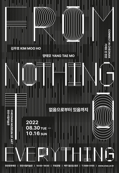 천안시립미술관 커넥트 인 천안 <없음으로부터 있음까지>는 동시대 흐름 속에서 지역미술의 현주소를 확인하고 방향성을 모색하기 위해 기획된 전시로 폭넓은 조형적 실험을 통해 예술적 역량을 쌓아온 김무호·양태모 작가의 작품세계를 집중 조명하고자 한다.