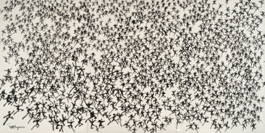 군상, 한지에 먹, 100x200cm, 1983