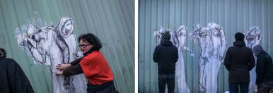 난민들과 드로잉을 그리는 작가, 프랑스 칼레_ 2014