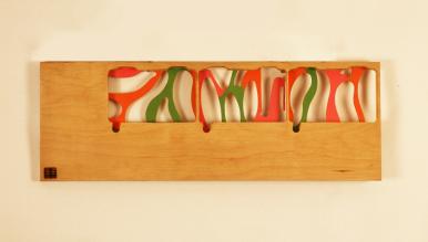 Journey, 2015_wood, paint, glazed ceramic_Size Variable