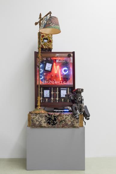 서울 멋쟁이, 잡지,스탠드,전선,전구,소켓,체인,금속 링,바퀴,우산,끈,다양한 휴대폰 장식줄, 207x90x90cm, 2010