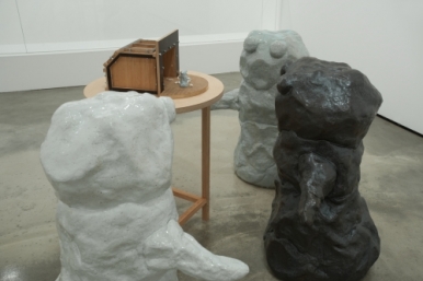 Free Spector, 브론즈에 아크릴릭, 나무, 세라믹(검정색, 흰색, 옥색) /각 85x90x50 /2009