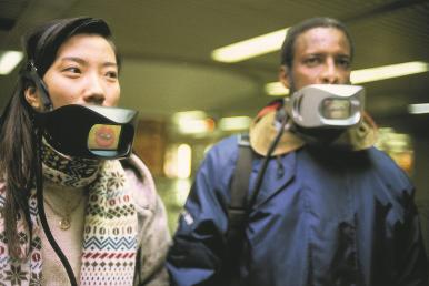 핀란드 헬싱키의 거리에서 <대변인(마우스피스)>(1993년 작)을 시연 중인 퍼포머들, 1993, 프랑스 루아르 FRAC 소장